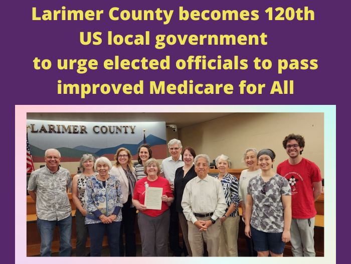 Every one of the almost 363,000 people who live in Larimer County should have access to comprehensive, quality health care including vision, hearing, dental, and mental health services according to a Resolution of the Larimer County Board of Commissioners Supporting Improved Medicare for All as the State or National Health System passed Tuesday. On May… Read More »Larimer County passes Resolution for Improved Medicare for All