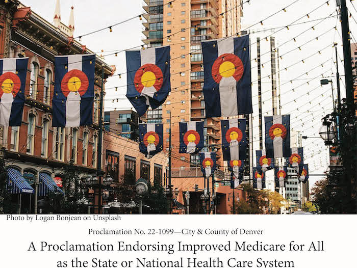 The Denver City Council on Monday passed a Proclamation Endorsing Improved Medicare for All as the State or National Health System. Joining almost 100 US cities including Fort Collins, Los Angeles, Atlanta, Milwaukie, Tucson, Seattle, Minneapolis, and the Town of Jamestown, Colo., the Denver Council took this action to stand for the wellbeing of everyone… Read More »Denver passes Proclamation for Improved Medicare for All!
